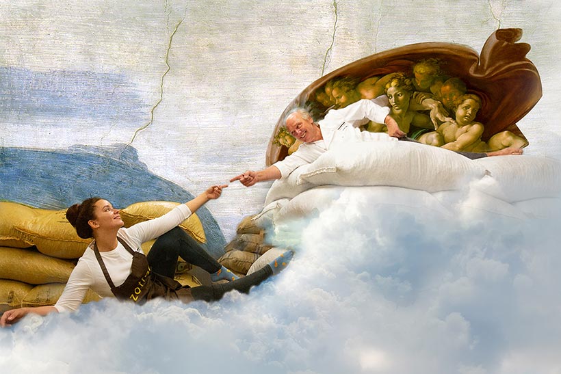 STANDARD: In der Produktion hängt ein Bild, auf dem Sie sich wie Michelangelos Adam nach Josef Zotter strecken, ohne seine Finger zu berühren. So nah und doch unerreichbar?
