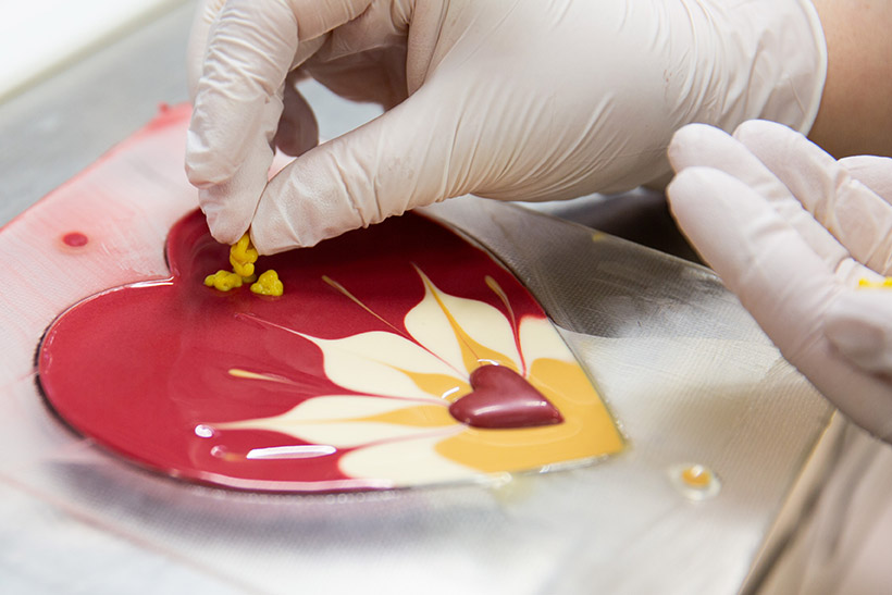 Jede Mi-Xing wird einzeln in Handarbeit hergestellt, gemustert und dekoriert. In der Mi-Xing-Welt stellen wir Ihre individuelle Wunsch-Schokolade her. Man kann aus einer Vielzahl von Formen wie Herz, Blume, Stern, Hase u.v.m. wählen, zudem gibt es eine Fülle von Zutaten, Füllungen und Dekors, die jede Mi-Xing einzigartig machen – ein echtes Unikat zum Vernaschen und Verschenken. Mit Mi-Xing kann man auch ganz easy eine vegane Schoko mixen.