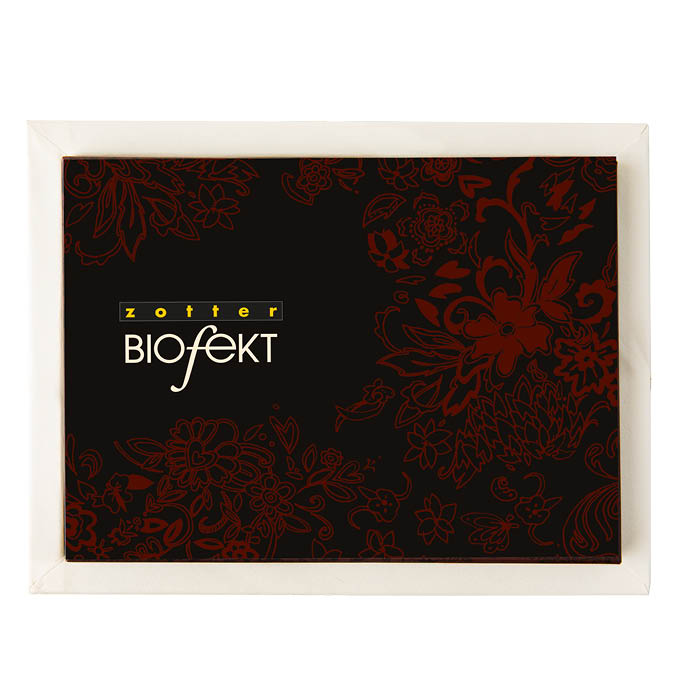 8 handmade organic bonbons in fruity and nutty varieties with almond praline with rose petals, caramel and berries. Plus a hand-scooped chocolate with a fruity raspberry-coconut filling, a hand-scooped with crispy crackling caramel-almond praline with wafer brittle, a milk chocolate filled with tenderly melting orange-caramel praline and an excellent dark chocolate with a classic 70% cacao content and cacao from Uganda.