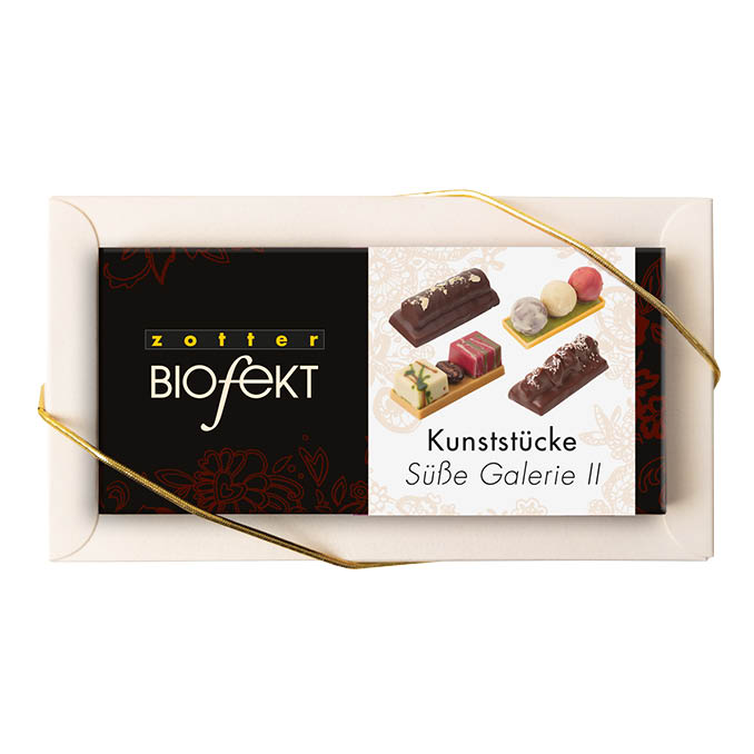 A bonbon box with 4 creative and handmade organic bonbon artworks.