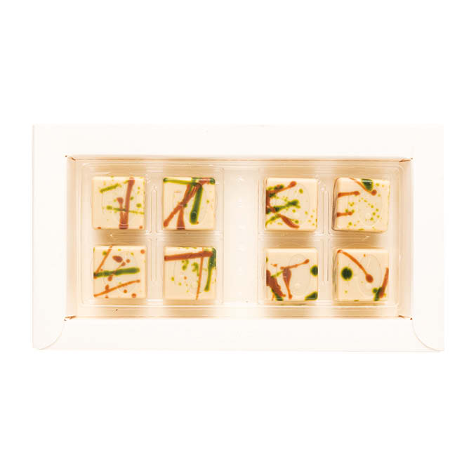 8 pieces in a beautiful bonbon box, perfect for sharing with friends and family.
