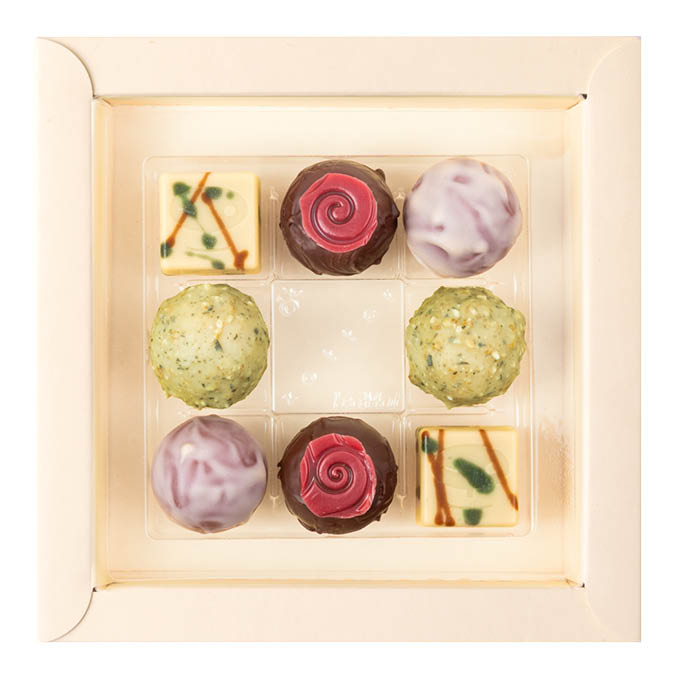 Chocolate boxes with a trendy design, filled with 8 gloriously fresh filled chocolates.