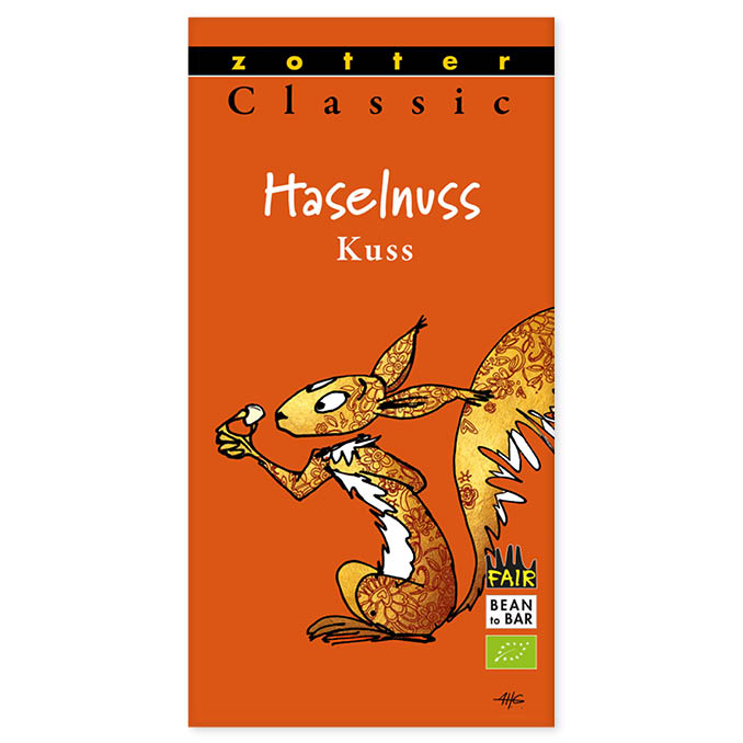 A milk chocolate bar kissed by a tender hazelnut nougat created with freshly roasted hazelnuts