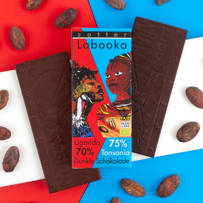 Experience 2 different first-rate single origin chocolates, representing the broad aroma spectrum cacao can have. Hand-selected cacao from Latitude in Uganda and Kokoa Kamili in Tanzania, both collectives we’ve visited and whose dedicated and sustainable way of cultivation deeply impressed us. Pure sophisticated African cacao!