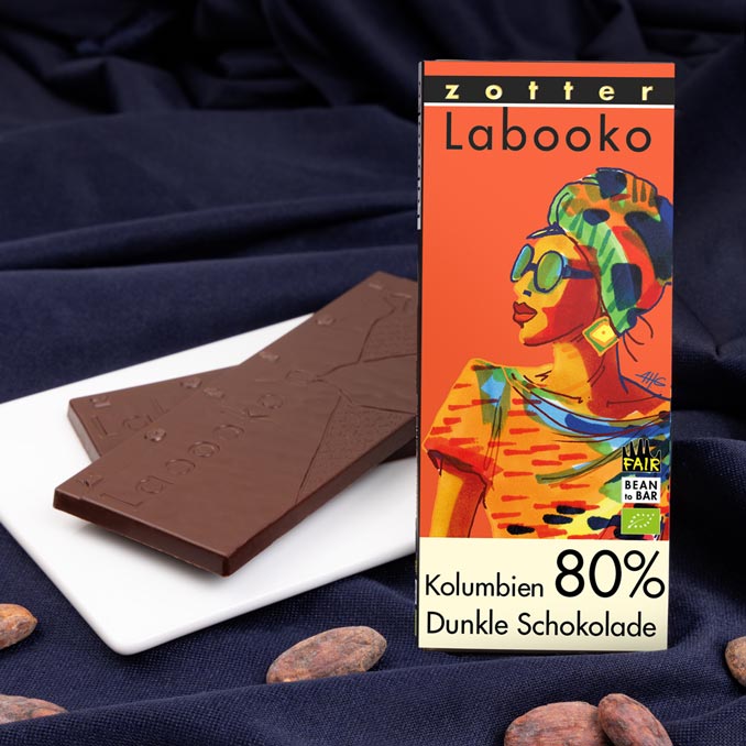 Single origin chocolate with cocoa beans from Colombia.