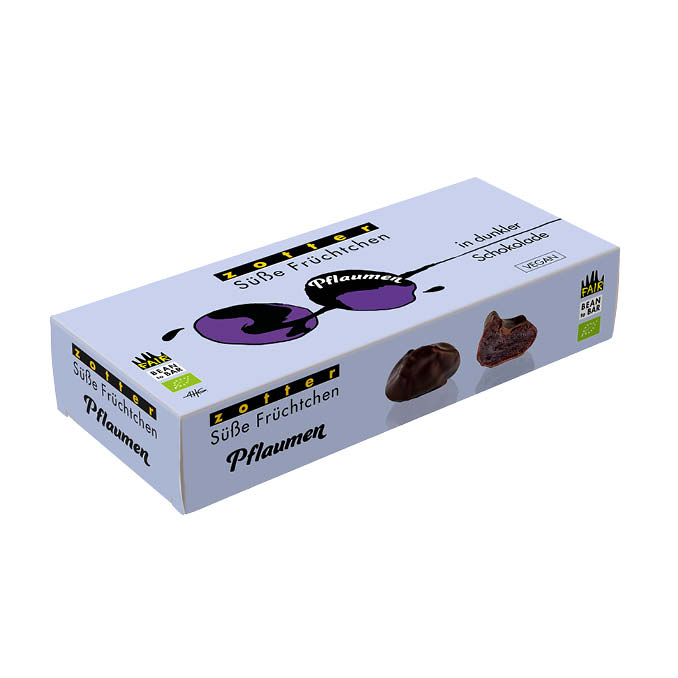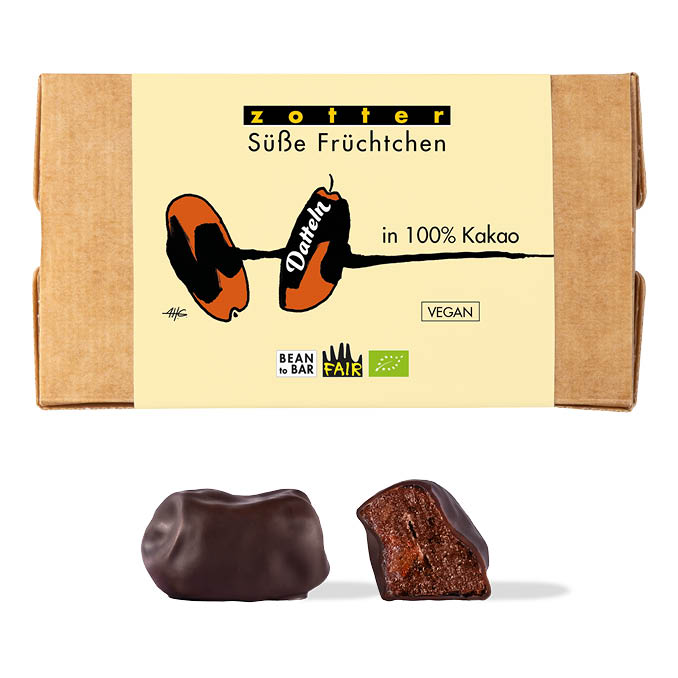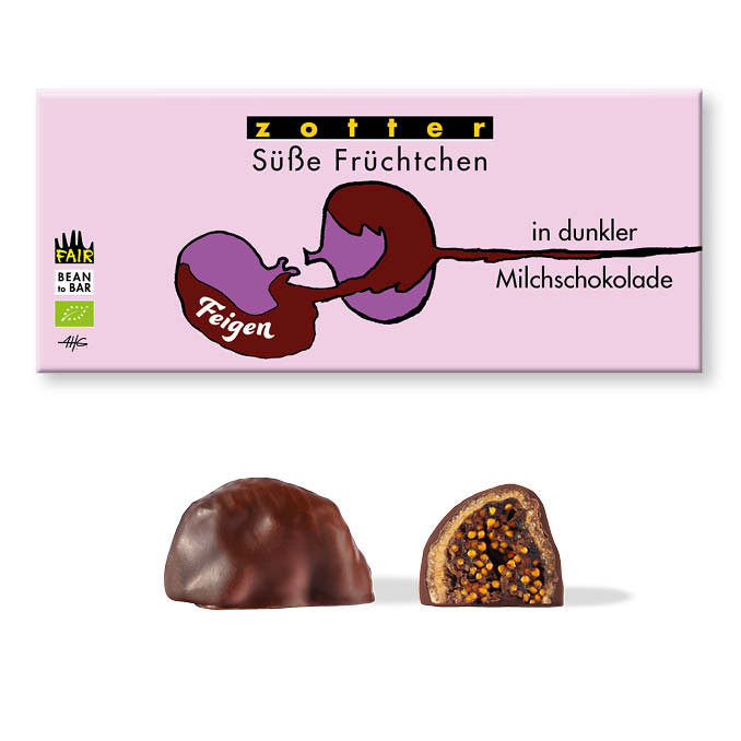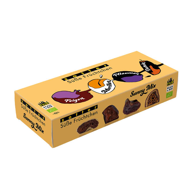 Dried little fruitsies in a crunchy, dark and in a tender, light chocolate coat, brought to you straight from our chocolate factory. Discover super soft dates, crunchy figs, sun-kissed apricots and plums, all organic & fair and unsulphured, so the fruitsies can deploy all of their power. A supremequality snack experience – the revival of an absolute classic!