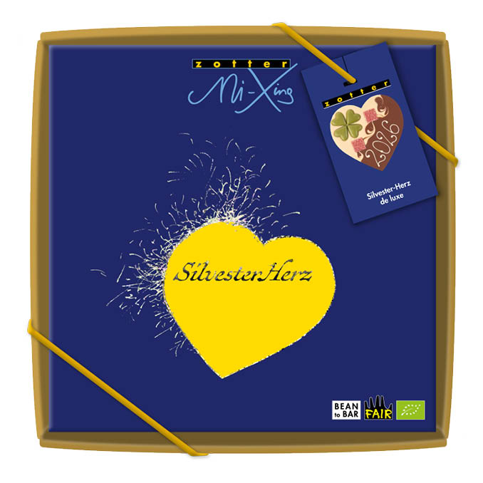The heart comes wrapped in a lovely gift box featuring a sparkly New Year’s design.