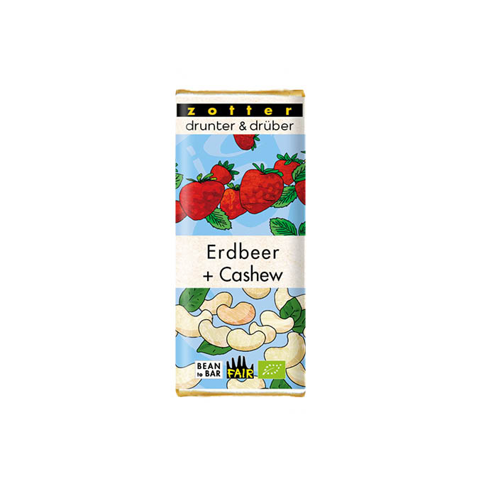 Ingredients: raw cane sugar°*, cocoa butter°*(28%), CASHEWS°*(18%), freeze dried strawberries°(5%), FULL CREAM MILK POWDER°, SKIMMED MILK POWDER°, cocoa mass°*, SWEET WHEY POWDER°, whole cane sugar°*, emulsifier: lecithin (SOY)°, lemon powder°(lemon juice concentrate°, corn starch°, sugar°), vanilla powder°*, salt