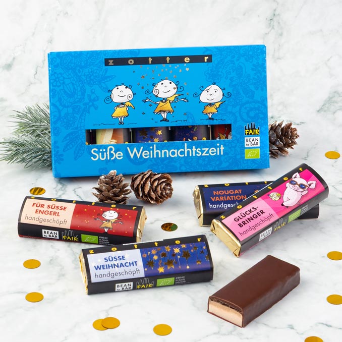 1. Sweet Christmas - Gingerbread & Fruit: Milk chocolate° with fruit°-(28%) and almond praline-gingerbread°(28%) filling