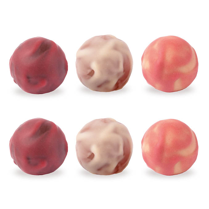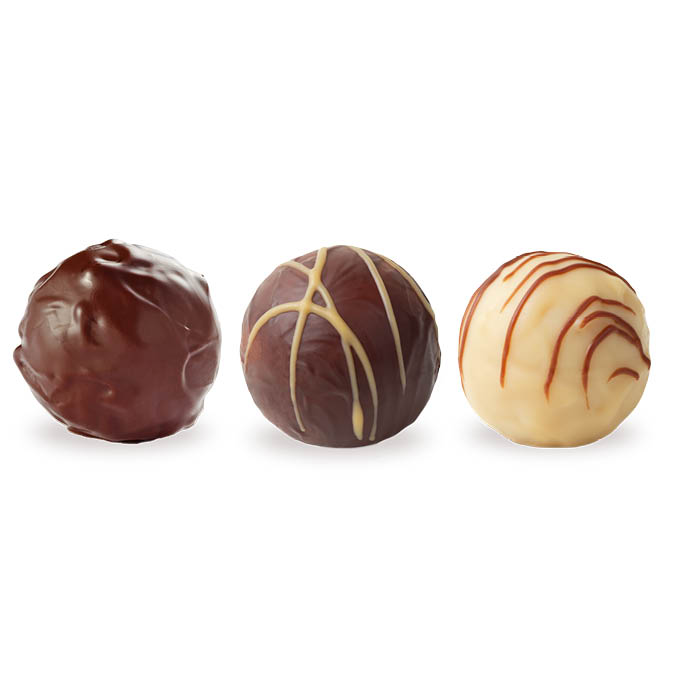 Dark, high-percentage chocolate balls are filled with a creamy Marc-de-Champagne ganache. A high-percentage chocolate high!