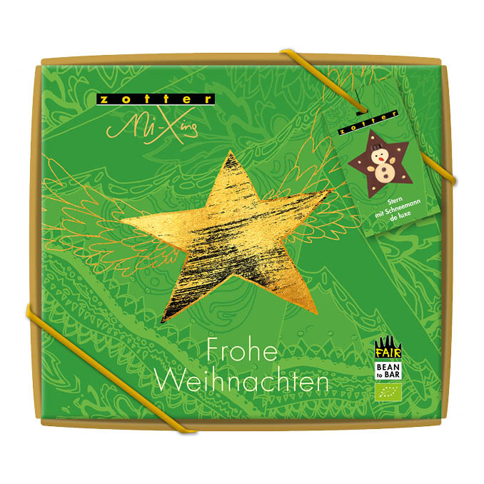 Milchschokoladen-Stern° mit Reisdrink-Schneemann° und Dekor°