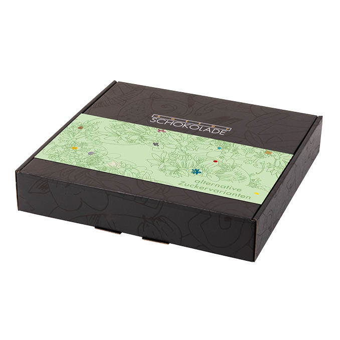Ein Geschenkset voller Schokoladen, die mit spannenden, alternativen Zuckervarianten gesüßt sind oder ganz auf Zucker verzichten. Mit einer handgeschöpften »Portwein & Feige«-Schoko, gesüßt mit Ahornzucker. Dazu ein dekoriertes Schokoei aus zweierlei Schokoladen: einmal 100 % Kuvertüre, die reine Kakaokraft, komplett ohne Zuckerzugabe und einmal Milchschokolade mit 50 % Kakaoanteil, gesüßt mit Dattelzucker. Außerdem gibt es 5 Schoko-Taler, die mit Dattelzucker, Ahornzucker und Kokosblütenzucker gesüßt sind oder ganz ohne Zucker auskommen. Zudem eine fruchtige Trinkschokolade mit charmantem Orangengeschmack, ohne Zuckerspielereien und eine kleine, pure Tafel mit 100 % Kakaopower. Verpackt in einer dekorativen Geschenkbox mit schönem Osterdesign.