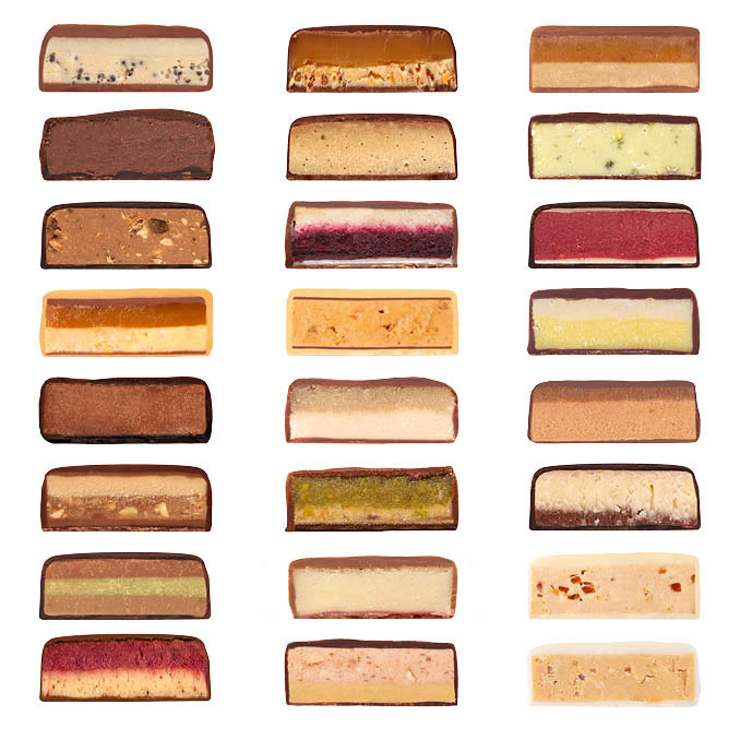 Kleine handgeschöpfte Schokowunder in 24 Sorten