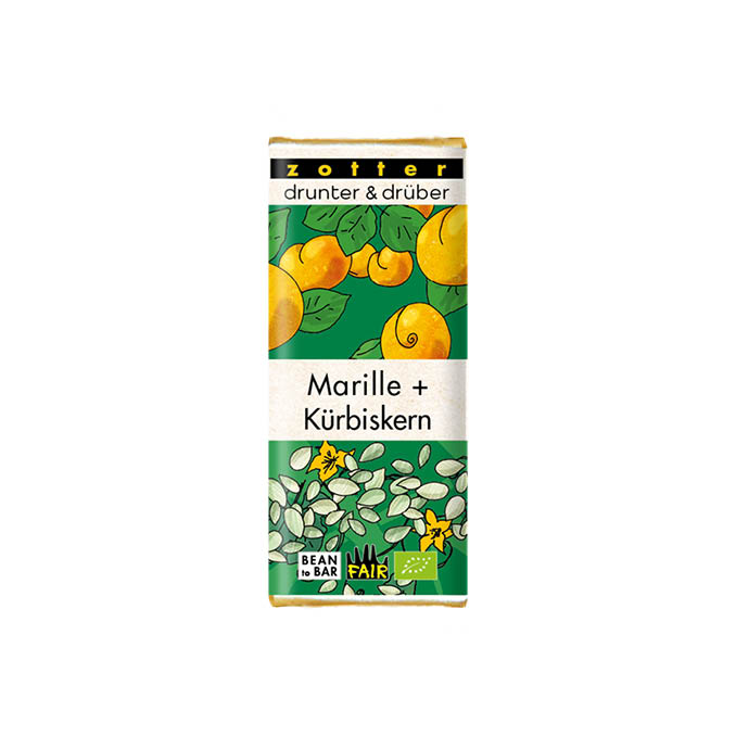 Grundpreis / kg: 110,00 €Marillentafel° mit Kakaobutter° und Kürbiskernnougat° mit Kürbiskernstücken°