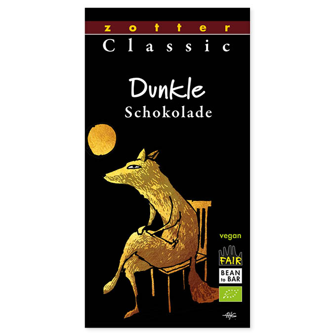 Eine klassische dunkle Herren- und Damenschokolade mit allerfeinsten Zutaten wie 70% Bio-Edelkakao, Rohrohrzuckersüße und ganz viel edler Kakaobutter. In der Bean-to-Bar- Schokofabrik verwandelt Zotter diese Zutaten in eine angenehme, dunkle Schokolade, die komplett bio und fair ist.