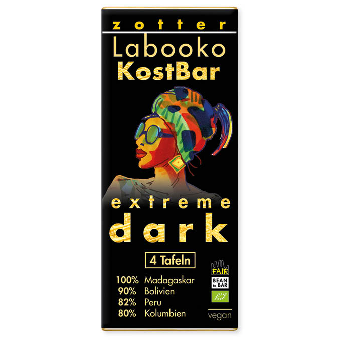 4 unterschiedliche dunkle Schokoladen mit sehr hohem Kakaoanteil.